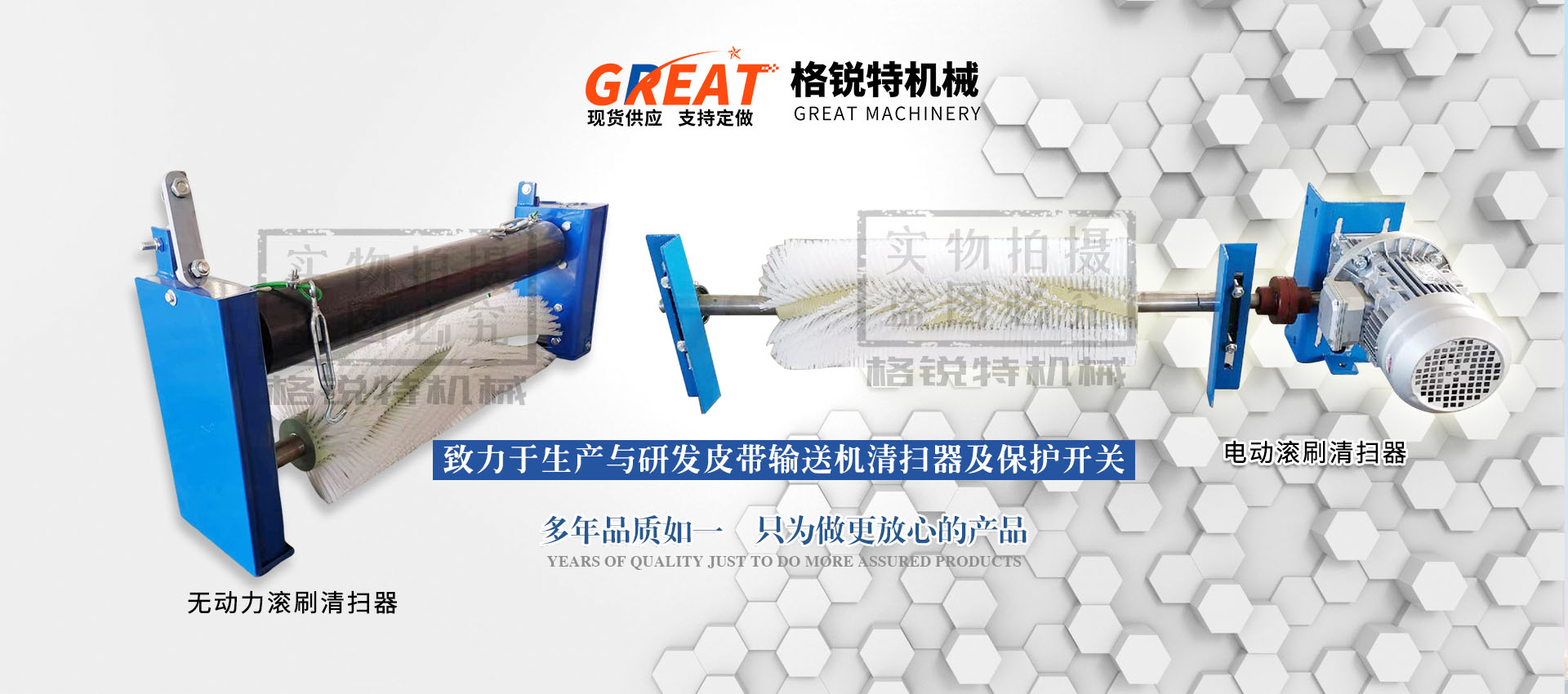 衡水格銳特機(jī)械科技有限公司常年致力于生產(chǎn)與研發(fā)皮帶輸送機(jī)清掃器及保護(hù)開關(guān),其中主營聚氨酯清掃器,合金清掃器,電動滾刷清掃器,機(jī)械式滾刷清掃器,緩沖床,緩沖條,雙向拉繩開關(guān),兩級跑偏開關(guān),打滑檢測器,料流檢測器等保護(hù)開關(guān),常年銷往各大水泥廠,煤礦廠,電廠,輸送機(jī)廠家,質(zhì)量優(yōu)越,價格實(shí)惠,望各大領(lǐng)導(dǎo)及同行來廠參觀指導(dǎo),期待您的光臨?。?!
